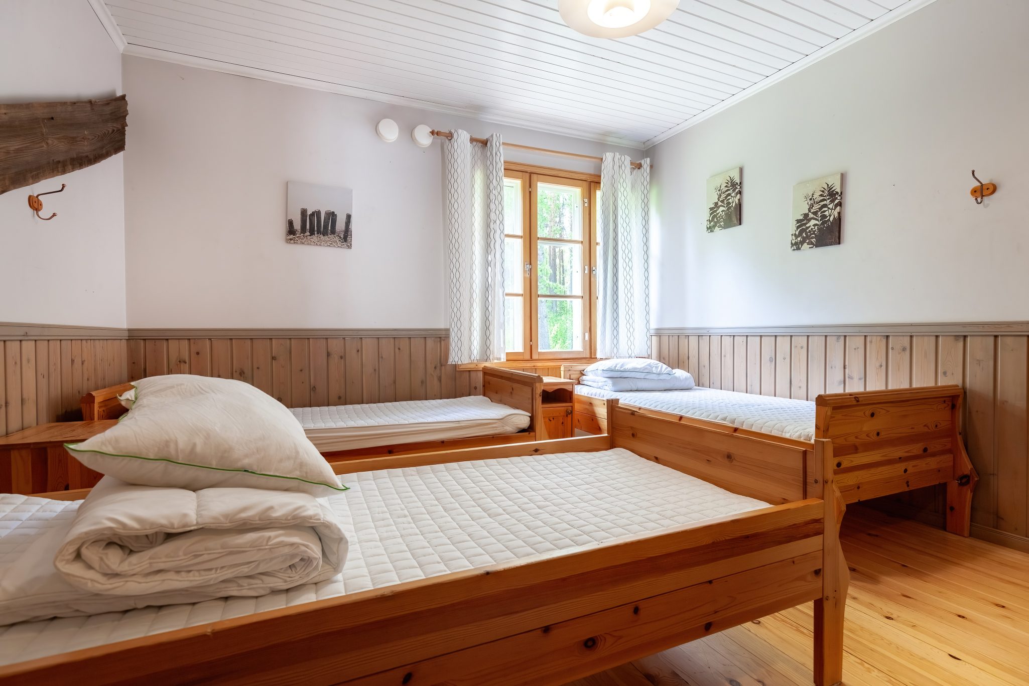 MAJOITUSTILAT: Vuodepaikkoja Ruuhijärvi tarjoaa yhteensä noin 23 vieraalle. Päärakennuksessa on kaksi 6 hengen makuuhuonetta, yksi 5 hengen makuuhuone ja seurustelutilassa 2 hengen vuodesohva. Aulassa on 2 kahden hengen vuodesohvaa. Toisen rantasaunan takkahuoneessa on kerrossänky 2–3 hengelle ja patjapaikkoja 2 vieraalle omilla patjoilla.