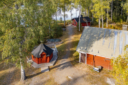 ULKOTILAT JA PALJUT: Mökin 2 puulämmitteistä 6 hengen kylpypaljua sijaitsevat rantasaunojen välisellä terassilla vesirajan tuntumassa. Päärakennuksen edessä on ympärivuotiseen käyttöön soveltuva grillikota ja erillinen nuotiopaikka. Päärakennuksen yhteydessä on penkeillä varustettu avoterassi ja erillinen terassi rakennuksen vieressä nuotiopaikan vieressä.