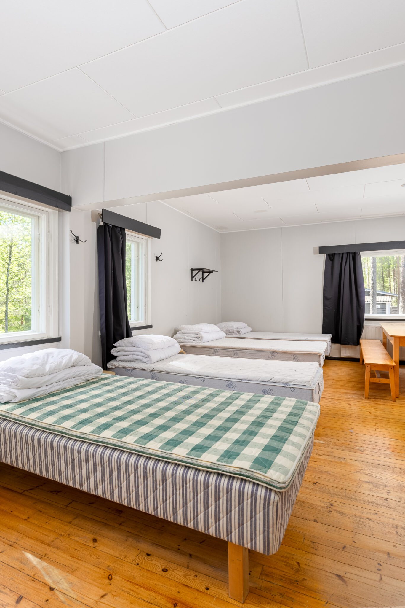 Tarvittaessa käytössä on lisäpatjoja. Peittoja ja tyynyjä on vuodepaikkoja vastaava määrä.