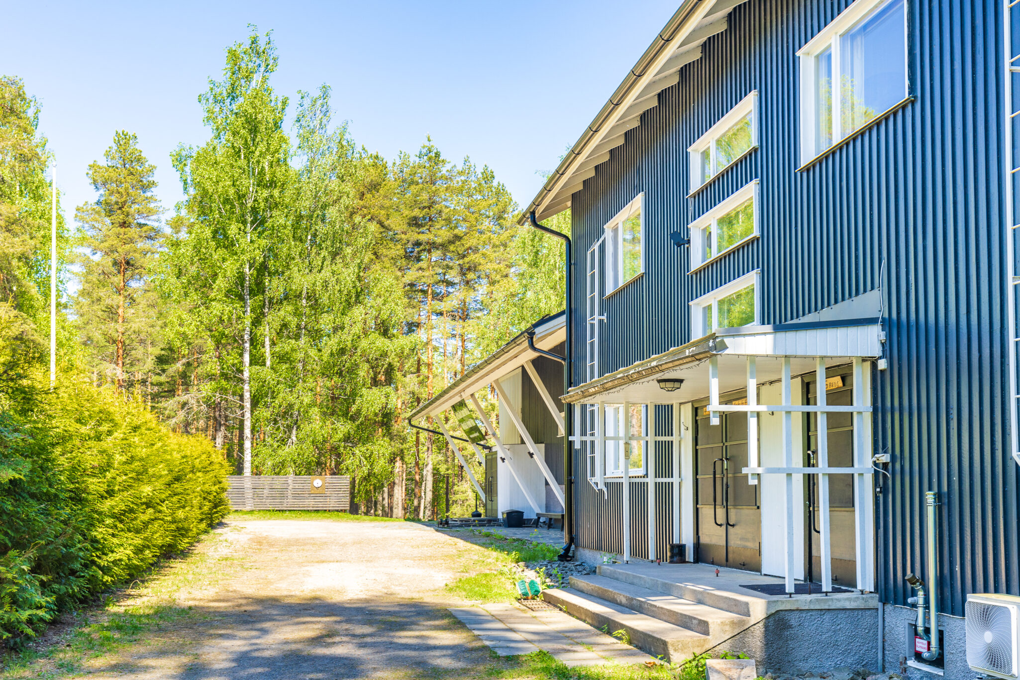 Korkean rantapenkereen päältä alas Kaartjärvelle katsova monitoimihuvila on tehty ihmistä varten, ilman turhia krumeluureja ja leppoisan yhdessäolon ehdoilla. Sen tavaramerkki on avarat yhteiset tilat ja konstailematon sisustus, jotka taipuvat monenlaiseen menoon ja meininkiin.