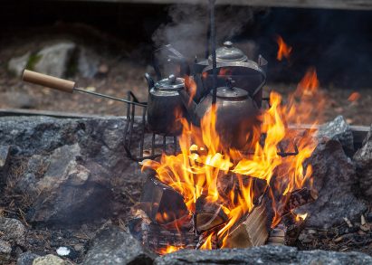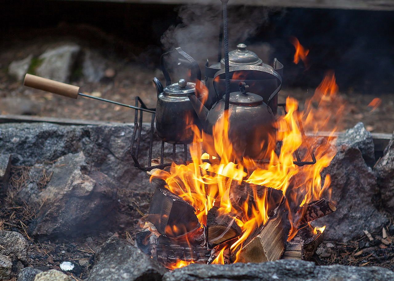 Järjestämme myös erähenkiset ruokailut erilaisten ulkoiluohjelmien yhteyteen, jolloin ruoka valmistetaan ulkona ja voidaan nauttia avotulen äärellä. Eräruokailun jälkiruuaksi maistuu aito nokipannukahvi ja muurinpohjaletut. Kysy erämenuamme majoituksen tai ulkoaktiviteetin tilaamisen yhteydessä.